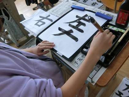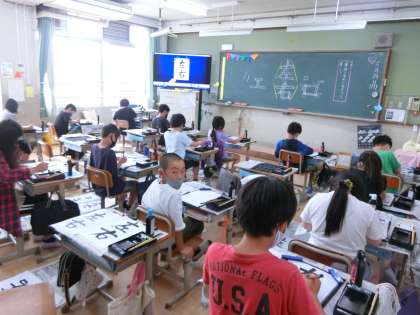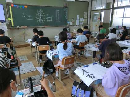 書写の学習で「左右」を書きました。「左」と「右」の書き順や形の違いを意識しました。お手本をじっくりと見て慎重に,ていねいに書こうとがんばっていました。筆使いも上手になっています! 一人ひとりが納得のいく作品ができてよかったです。