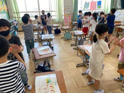 体でリズムをとったり,手拍子をうったりしながら,2拍子と3拍子のちがいに気づくことができました。