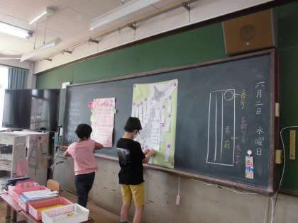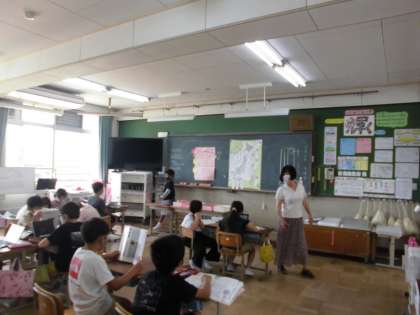 4年生は,タブレットや資料を活用しながら,お互いに調べたことを交流し学習を進めていました。