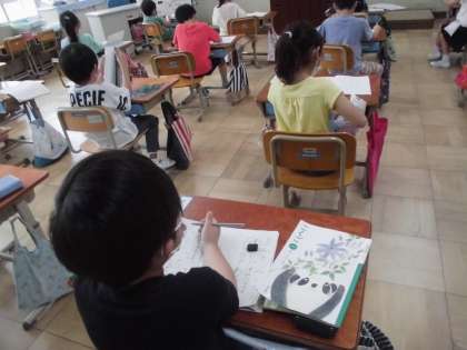国語の学習で文をつくりました。「だれが」「どうするか」という文を考え,文の終わりには「。」を付けることを学習しました。これからどんどん自分の考えを文にして取り組んでいきたいと思います。