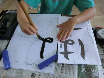 書写の学習で「はす」という字を書きました。鉛筆で書くと簡単なはずのひらがなも,筆で書くとかなり難しかったようです。特に結びの部分は,筆をうまく使うのが難しく,何度も練習していました。納得のいく作品を書こうと,みんなで集中して取り組みました。