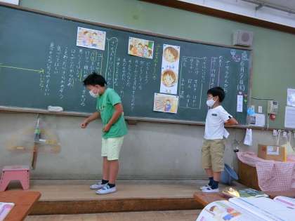 道徳の学習で,「さち子の笑顔」というお話を読みました。主人公の友だちが万引きしているところを見かけてしまったという内容です。もし自分が友だちが万引きしているところを見てしまったら…ということを考えました。寸劇で役割分担をして発表しました。「迷う気持ちもあるけれど,あかんことはあかんと言いたい!」と話していました。自分が正しいと思うことを貫いてほしいと思います。