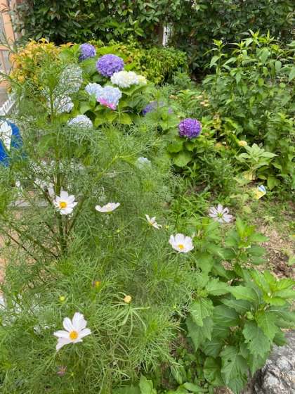 校庭には珍しく,紫陽花とコスモスが共演しています。