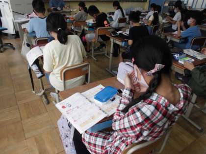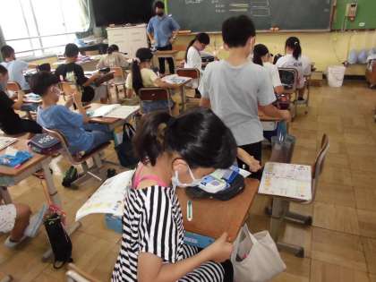 5年生は裁縫セットの道具の名前と使い方を確認していました。