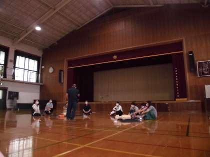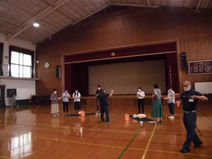 今年度は感染防止にも備えた講習で,救急隊が到着するまでの適切な行動ができるように実技を4グループに分かれて行いました。