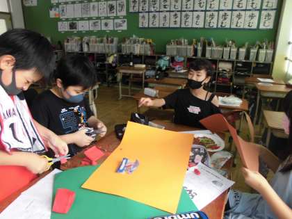 模擬焼きそばつくりの様子です。楽しそうに活動中です。