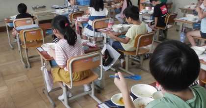 今日は七夕給食でした。七夕そうめんはそうめんを天の川に見立て,オクラは星に見立てた給食献立です。子ども達も喜んでおいしく食べていました。