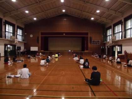 6年生は1学級の人数が多いため,密にならないように体育館で行っています。リコーダーを吹く時の姿勢,息の入れ方,音の指使いなど確認していました。そして,「ラバーズ コンチェルト」という曲を合奏していました。体育館は,柔らかい音色の響きに包まれていました。