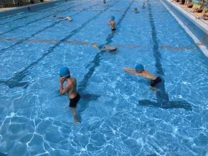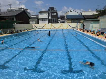 1年生が「今日,プールやねん。」と嬉しそうに話しかけてくれました。今日は前回で学習したことを確認しながら,きまりを守り学習を行っていました。慎重な表情で始まりましたが,水に慣れてきたら,笑顔がはじけていました。