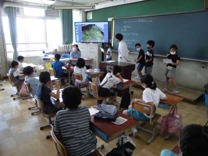 13日(火)にまちくさ博士に来ていただき,「まちくさみっけ」の学習で初めて作成した「まちくさカード」の発表会をしました。校庭にあるおもしろい形の草の写真から考えた物語を友達に紹介しました。
