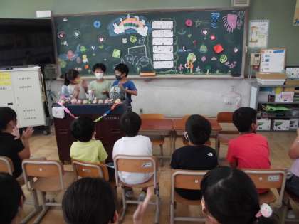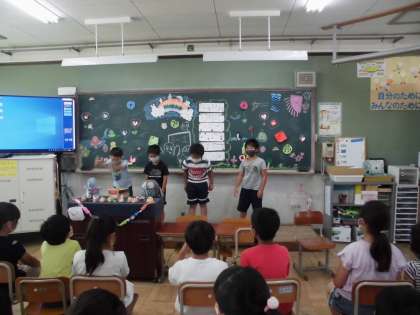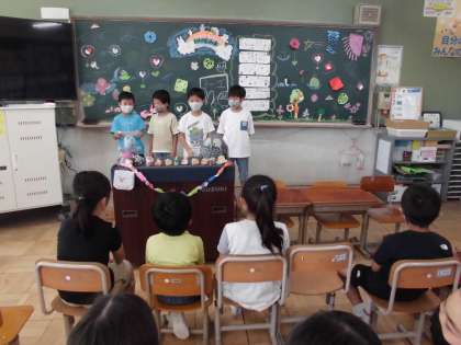 3年生のお楽しみ会が行われていました。子どもたちの手作りの飾りつけは,とてもかわいらしく教室の中に入ると意心地の良い空間です。自分のために,みんなのためにより良くしていこうという心意気が伝わってきて,すてきなお楽しみ会です。1学期末のお楽しみ会を活かして,これからも仲良く力を合わせてください。