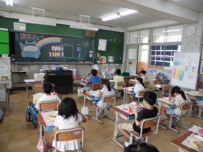 今朝は,「今日の給食は,パンやで〜」と話しかけてくれる児童もいて,給食をとても楽しみにしている様子でした。