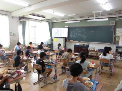 給食時間に教室を回ると静かに前を向いて,しっかり噛んで味わって食べていました。