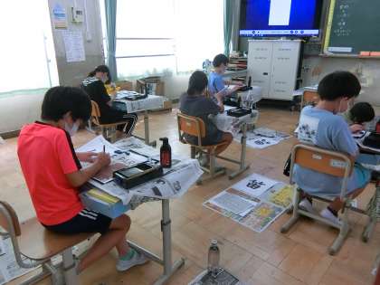 書写「笛」 公開日 2021/09/01 更新日 2021/09/01 4年担任から 書写の学習で,上下の文字の組み立て方に気を付けて,「笛」という字を書きました。竹かんむりの部分をバランスよく書くことが特に難しかったようです。すごく集中してがんばりました!
