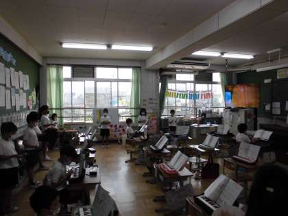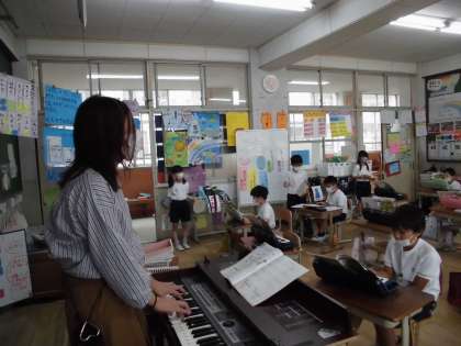 山のポルカ 公開日 2021/09/14 更新日 2021/09/14 保健室から 2年生は,音楽の授業に取り組んでいました。 緊急事態宣言中なので,鍵盤ハーモニカは吹かずに指づかいに確認しながら,タンバリン,カスタネットと先生のオルガンで「山のポルカ」を合奏していました。 子どもたちは笑顔にあふれ自然に体が揺れたりして,クラスの心が一つになり,音楽を楽しんでいる様子が伝わってきました。