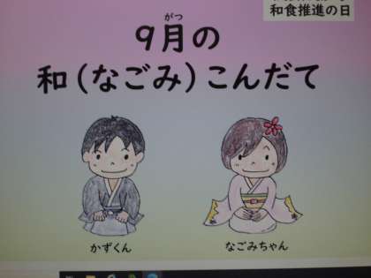 子どもたちは,毎月「和(なごみ)献立」の動画教材で和食について学習して,給食を食べています。「和(なごみ)献立」では,だしのうまみや季節感・旬を味わうことのできる献立等,和食の特徴や良さをより味わうことが出来るように工夫されています。