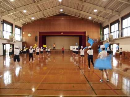 6年生は体育館で,熱中症対策をしながら運動会の練習に取り組んでいました。
