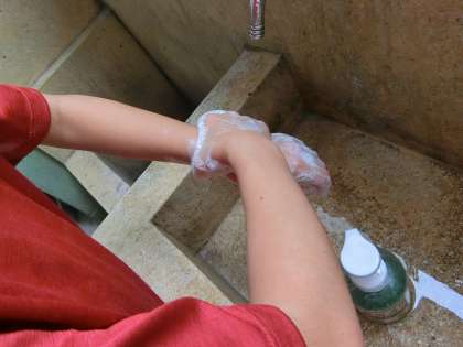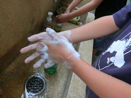 ていねいに手洗いをしています!