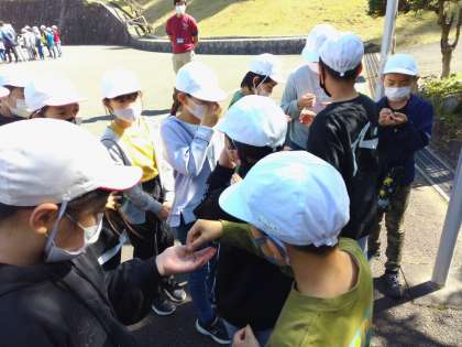自然観察が始まりました。みんな興味津々です。どんなものが見られるでしょうか。楽しみですね。