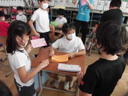 10月6日(水)朝読書の時間に,2年生と4年生のアイビーペアの友達との交流がありました。3組は2年生と4年生がいるので,一緒に交流しました。それぞれアイビーペアの友達に手紙を渡して,話しました。恥ずかしそうにしていましたが,嬉しそうでした。10月12日の朱七全力魂2021では,お互いに競技を見合います。アイビーペアの友達のことを意識して応援したいと思います。