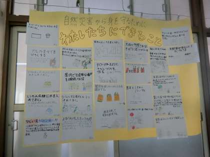 社会の学習で,自然災害からどのように自分の身を守ることができるかを考えました。もしものときに備えてどんなことができるかを考えると,家具を固定する方法や非常食を蓄える方法,電気やガスが止まった時に役立つ知恵などを知ることができました。さっそく「家に帰ってできることをやってみる!」と意気込んでいます。ご家庭でも話題にしていただけたらと思います。