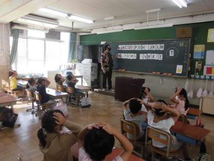 ALTの先生とアルファベットを学習しました。「B・V」「N・M」の発音がよく似ているので,発音の違いも教えてもらいました。ダンスやゲームをしてアルファベットに親しみました。