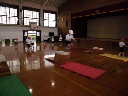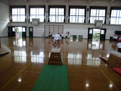 1年生は「手を洗った時,めちゃくちゃ水が冷たかった〜」と明るく話しかけて来てくれ,1時間目から元気いっぱいに跳び箱に取り組んでいました。
