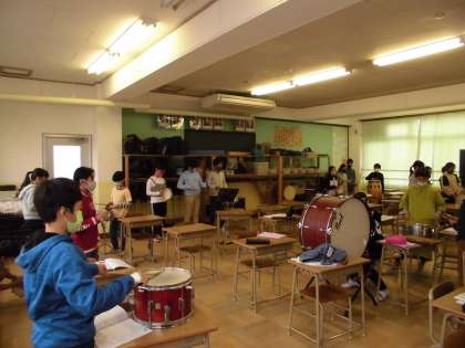 楽器の迫力ある合奏が響き渡っていたので,思わず音楽室に足を運ぶと5年生が合奏していました。