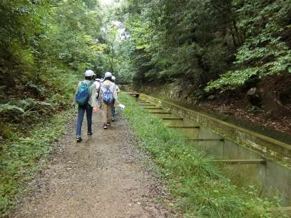 疏水の脇を通ると,疏水の流れが意外に速かったようで,驚いていました。ここに琵琶湖の水が流れていると,思いをはせていました。