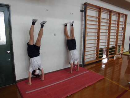 なかなか難しいですが,逆立ちから上手にできるように一生懸命に取り組んでいました。