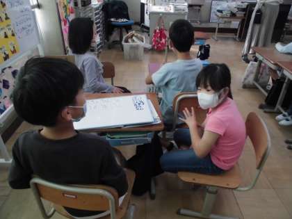 しばらく3組の交流学習は,していなかったのですが,感染予防対策をしっかりとしながら,徐々に再開しています。この日は2年2組と音楽の交流学習をしました。友達の鍵盤ハーモニカのメロディを聴いたり,みんなと一緒にタンバリンやカスタネットを使って,「いるかはざんぶらこ」や「山のポルカ」のリズム奏をしました。「おまつりの音楽」でのリズムづくりにも参加して,楽しいリズムを楽しむことができました。