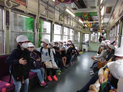校外学習に出かけました。前半は嵐電教室,後半は北野天満宮の散策をしました。