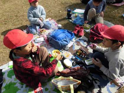 天候を心配していましたが,植物園では太陽が照り,半そでになって遊ぶ子たちもいました。大きい芝生広場で寝転んだり,おにごっこをしたり,思う存分楽しんでいました。