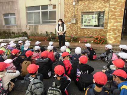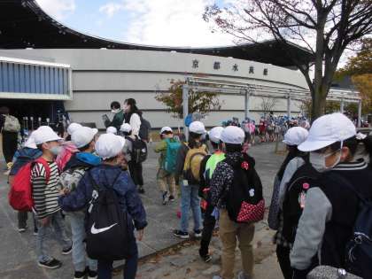 出発前にバスや水族館,梅小路公園での約束を聞き,先生方に見送っていただき出発しました。