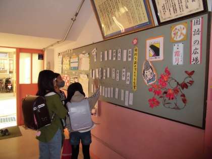 校舎にはこころのひろば,国語の広場の掲示があります。