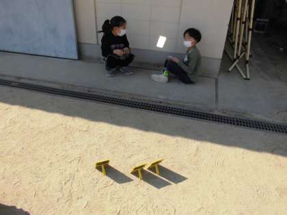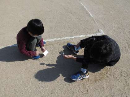 理科で太陽の光の学習を進めています。光を集めたところの様子を観察しました。理科の時間になると雲が出てきて予定通りの観察ができていませんでしたが,本日ようやく観察することができました。