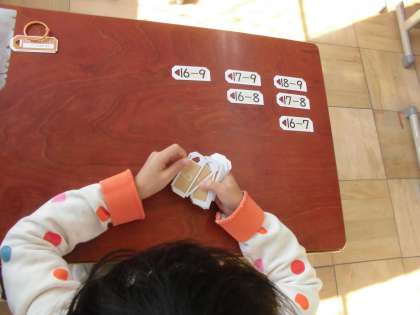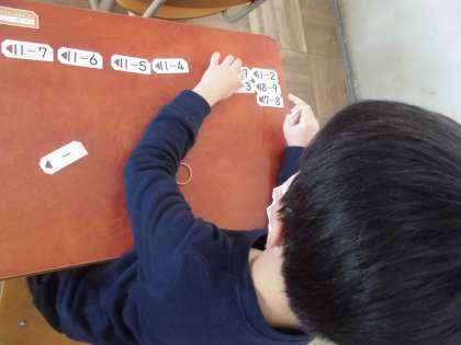 ひきざんカードを使って,なかま集めをしました。どんなならびかたになっているのかも考えて取り組みました。