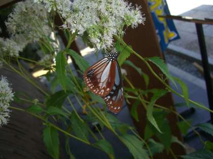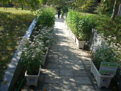 梅小路公園で行われている「藤袴と和の花展」にいってきました。たくさんの藤袴や和の花に混じって,朱七校みどりクラブの藤袴も立派に存在感を放っていました。藤袴にくるという蝶「アサギマダラ」が乱舞している光景に感動しました。