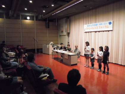 10月10日(月),科学センターで行われた未来フェスタ京都〜科学×エコ〜スペシャル・エコ・フォーラムに朱七みどりクラブの子どもたち4人が出演しました。