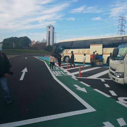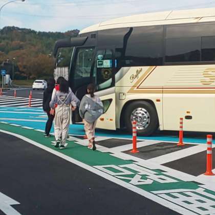 6年生は山陽自動車道 淡河(おうご)パーキングエリアに着きました。トイレ休憩をとりました。