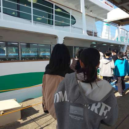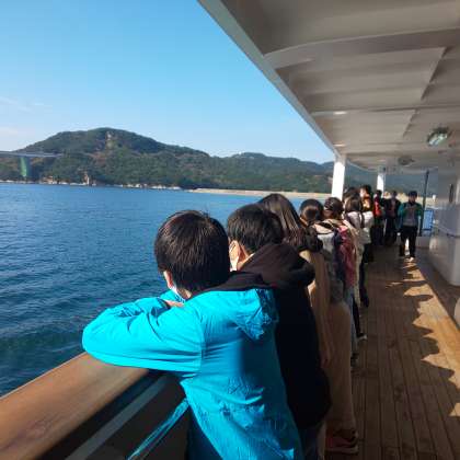 うずしお観潮船「わんだーなると」に乗りました。徳島県はとてもいい天気です。