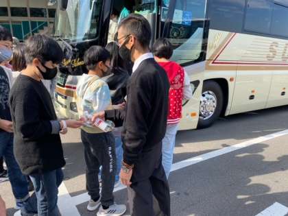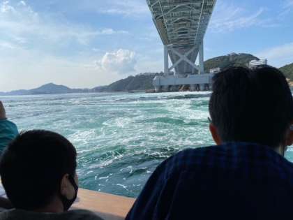 渦潮の雄大な景色,神秘的な自然の姿に子どもたちは感動していました! バス乗車時も感染症対策はかかせません。