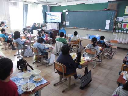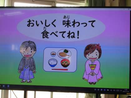 平成27年6月より,和食推進の日として「和(なごみ)なごみ献立」を毎月1回実施しています。和(なごみ)献立の日は,子どもたちは毎月,動画教材で和食について学習した後,給食を食べます。京都市教育委員会のホームページでも見ることもできます。「京都市和食推進の日」で検索してみてください。