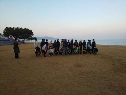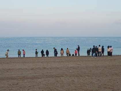 おはようございます。修学旅行2日目の行程が始まりました。国民宿舎慶野松原荘は,ビーチとも近く,浜辺の散歩から1日が始まります。