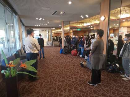 いよいよ退館式です。お世話になった,宿の方に感謝の気持ちを伝えました。一晩,心地よく過ごすことができました。これより,大鳴門橋を渡り,大塚国際美術館に向かいます。