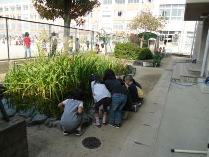 藤棚の下に積まれているのは,「ふれあい手づくり広場」作りに使う芝です。子どもたち・保護者・地域の方たちと一緒に,ヒョウタン池周辺に学校のシンボルゾーンを作ろうと,今準備を進めています。もし,お時間があれば,ぜひ参加してください。