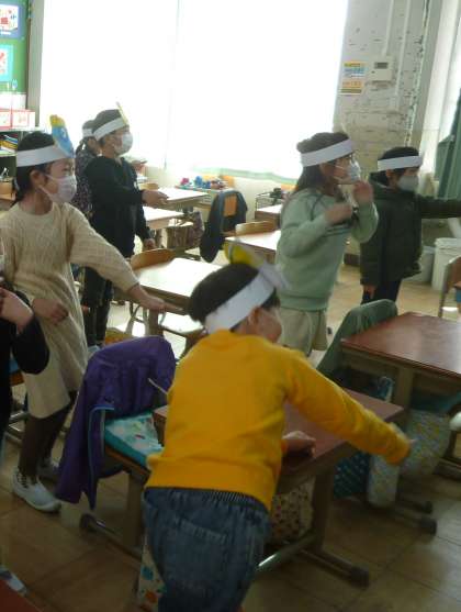 この日の給食には,イワシの生姜煮や福豆など節分ならではのメニューが並び,節分の一日を満喫することができました。