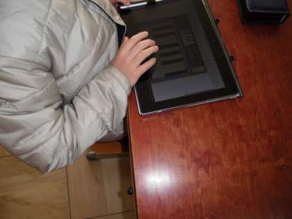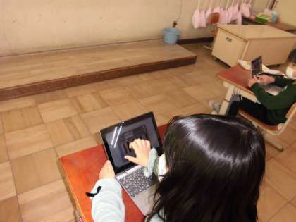 教室に入ってみると,毎日大切に取り扱っているGIGA端末を使って,「こいぬのマーチ」を弾いていました。