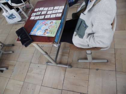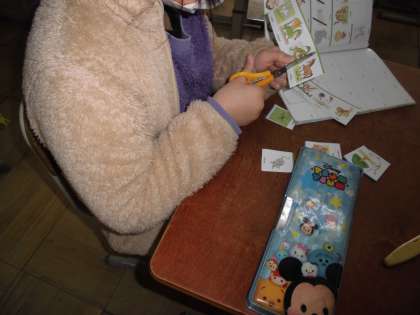 カードをはさみで切って,そのカードを使って楽しく英語に触れていました。