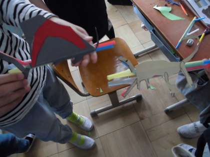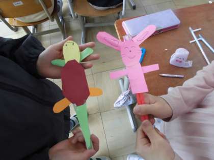 ストローで仕組みを作り,それぞれがパタパタ動かしたいものを画用紙で作り仕組みに貼り付けました。角や耳が動いたり,生き物が歩いたり,動かすととってもワクワクする作品ができあがりました。是非,動く様子を見てください!